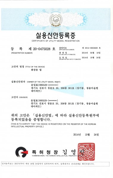 특허/인증서 고객이 신뢰할 수 있는 기업을 위해 노력합니다. Total 9건 1 페이지 9 디자인 등록증 작성자 최고관리자 조회 1061 작성일 11-21 8 iso인증 갱신 14001 2018-2 작성자 최고관리자 조회 1210 작성일 11-19 7 iso인증 갱신 14001 2018-1 작성자 최고관리자 조회 1166 작성일 11-19 6 iso인증 갱신 9001 2018-2 작성자 최고관리자 조회 1107 작성일 11-19 5 iso인증 갱신 9001 2018-1 작성자 최고관리자 조회 1134 작성일 11-19 4 특허증 작성자 최고관리자 조회 1192 작성일 11-19 3 실용신안 등록증 작성자 최고관리자 조회 1193 작성일 11-19 2 특허증 작성자 최고관리자 조회 1127 작성일 11-19 1 특허증 작성자 최고관리자 조회 1040 작성일 11-19 게시물 검색 검색대상 제목 내용 제목+내용 회원아이디 회원아이디(코) 글쓴이 글쓴이(코) 검색어 필수